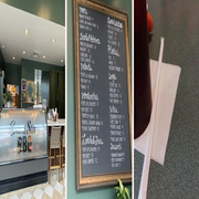 Fried Thick Cut Bologna, Creamy Scrambled Egg, American Cheese, on Croissant Loaf. Served with Tots